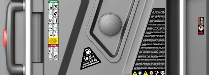 Большой топливный бак на 18,5 литров обеспечивает до 7,5 часов работы при средней нагрузке. Электронный датчик уровня топлива, данные с которого выводятся на дисплей, избавляет от необходимости открывать крышку бака для проверки. Встроенная защита от низкого уровня масла автоматически остановит двигатель до наступления критического износа, продлевая его ресурс.